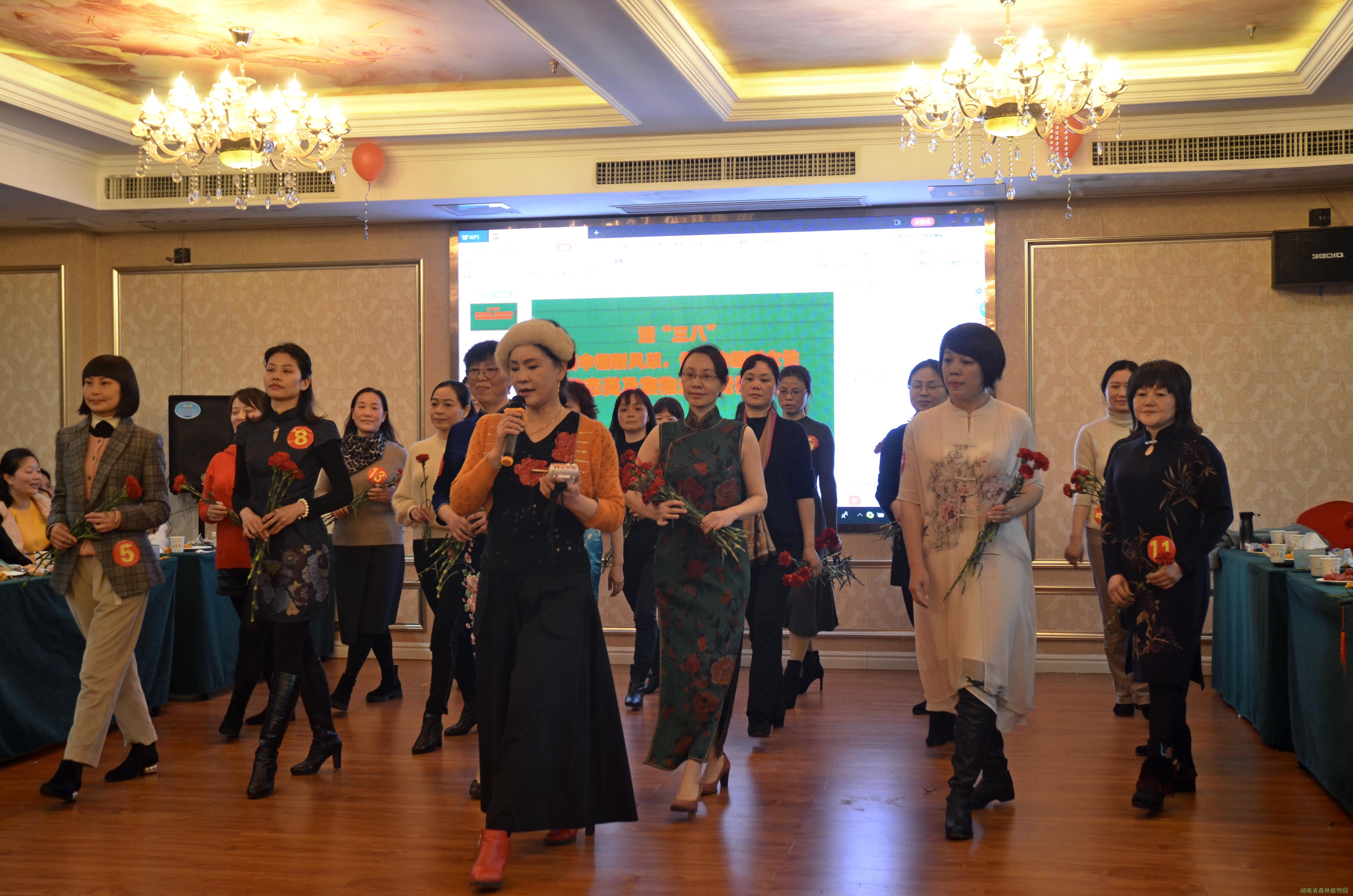 值此“三八”国际劳动妇女节来临之际,为深入学习贯彻党的十九大精神,落实中国妇女十二大的目标任务。庆祝三八国际劳动妇女节,充分展示新时期省植物园女性追逐美好中国梦的生活新常态,进一步调动广大妇女积极投身美丽植物园建设。37日上午,在我园妇委会的组织下,成功举办了迎‘三八’展巾帼新风采 做植物园新女性仪态美及旗袍走秀竞赛活动。园领导胡俊东副主任,徐雯副主任及党政办、人事处主要负责人共70多位女性参加了此次活动。