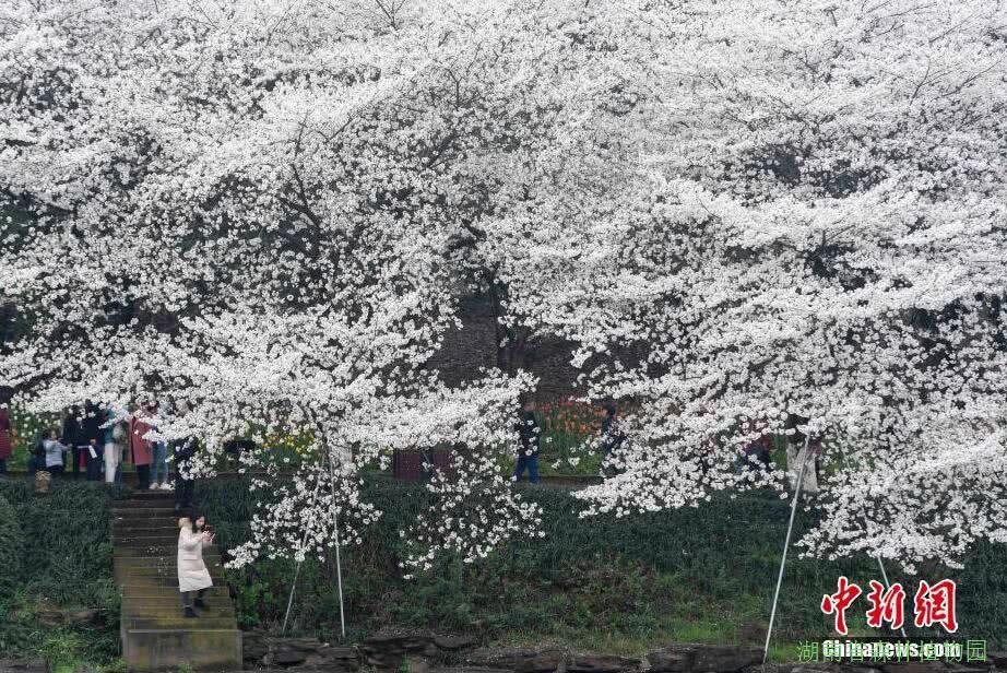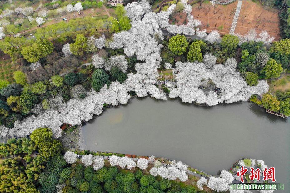 3月23日,被誉为赏樱圣地之一的湖南省森林植物园的樱花迎来最佳观赏季。犹如“春雪”的樱花覆盖在园内湖畔四周,游人纷纷用手机和相机记录下这梦幻花海般的美景。杨华峰摄