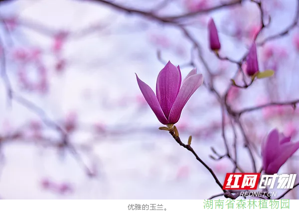 玉兰花分布在180亩的木兰园及三湘景园、木兰科植物展示区和木兰科植物种质资源基因库,共收集并成功保育木兰科植物园7属82余种,展现30多个品种玉兰家族的风采。