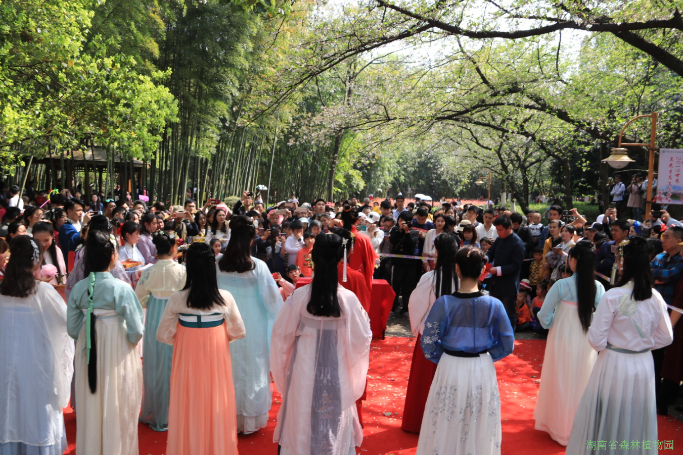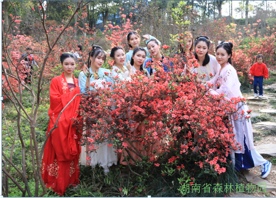 3月30日下午,由湖南省森林植物园、湖南省湖湘文化研究会共同主办,湖南省高校国学联合会和湖南弘湘文化开发股份有限公司承办的“万紫千红披锦绣,胜日寻芳贺花神”之2019年花朝节民俗活动在省植物园竹园举行。活动现场不仅吸引了众多游客、大批身着汉服的同袍、来园赏花的摄影爱好者争相观看,还邀请了人民日报海外网、华声在线、湖南卫视茶频道、自媒体、新媒体、红网等众多媒体到场为我园赏花游园宣传造势。”百花生日是良辰,未到花朝一半春。”花朝节在省植物园已是举办第二届了。作为中国的传统节日(又称花神节),不仅代表着一年的花期从此时开始,也象征着万物复苏的开始。千百年来,民间庆祝花朝节有着悠久的历史传统。在植物园百花盛开的氛围中,身着汉服的游客们成了百花丛中一道古雅的风景。此次花朝节民俗活动的举办,不仅旨在倡导国人尊重传统、继承传统、弘扬传统。更掀起了游客来我园赏花踏春活动的高潮,助推后期普贤象、绿樱郁金等晚樱品种及杜鹃花品的推荐。