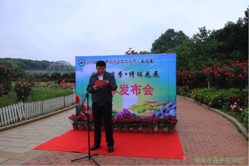 428日上午,2019湖南世界名花生态文化节—“夏之恋”玫瑰·绣球花展媒体发布会在省植物园美丽的玫瑰长廊旁隆重举行。出席发布会现场的有我园园务会全体成员、志愿者服务队成员以及中新社、新华社、湖南卫视、湖南经视、湖南公共、长沙新闻、湖南日报、长沙晚报、潇湘晨报、新湖南、红网、腾讯大湘网10余家媒体朋友们。湖南省森林植物园副主任蒋利洪先生介绍了此届“夏之恋”玫瑰·月季·绣球花展的有关情况。花展时间从428日一直持续到630日。期间游客们不仅能欣赏到近5万余株形状“奇”特、花色“奇”多、造型“奇”特的玫瑰花.月季花,6千平米的绣球花,上百种明星花卉。还有插花艺术课堂、探究自然·寻访花香研学旅行活动以及科技活动周等一系列与花相关的活动丰富游客们的赏玩体验。